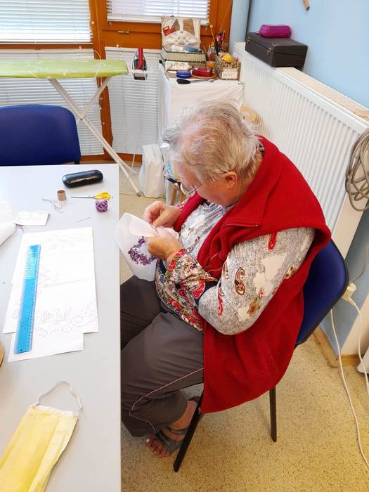 Uživatelka při práci s papírem - výroba škrabošek na ostatky.