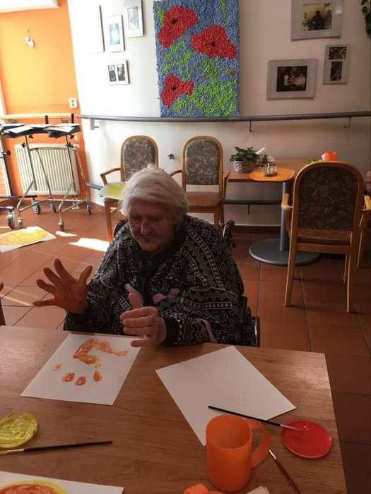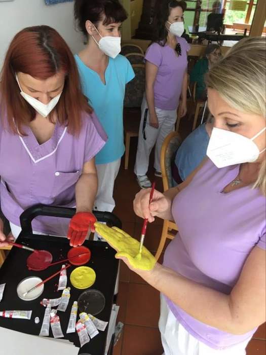 Pracovnice přímé péče zapojené do výtvarné činnosti - otisk dlaně.